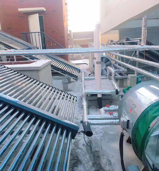 技术要求:该项目热水系统以太阳能供热水为主,共采用格瑞德60支(φ47*1.6)的集热器189组,集热器面积约1360平方,约11340支真空管,每栋楼均采用真空管集热器、不锈钢组合式水箱、控制柜、循环泵等组成太阳能热水系统来供应热水。