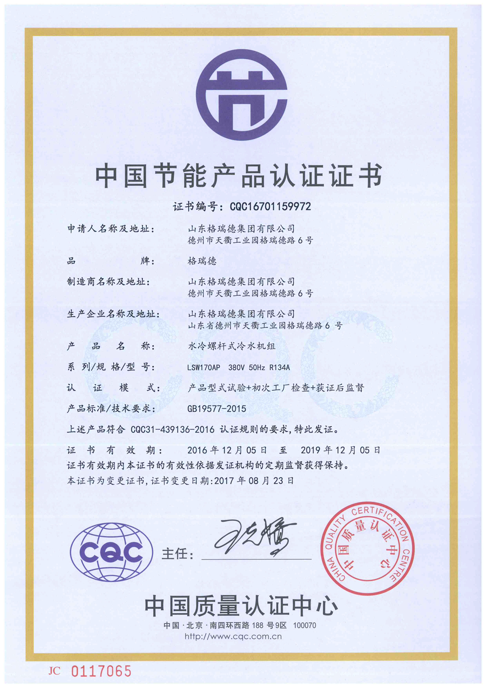 节能产品认证-水冷螺杆式冷水机组