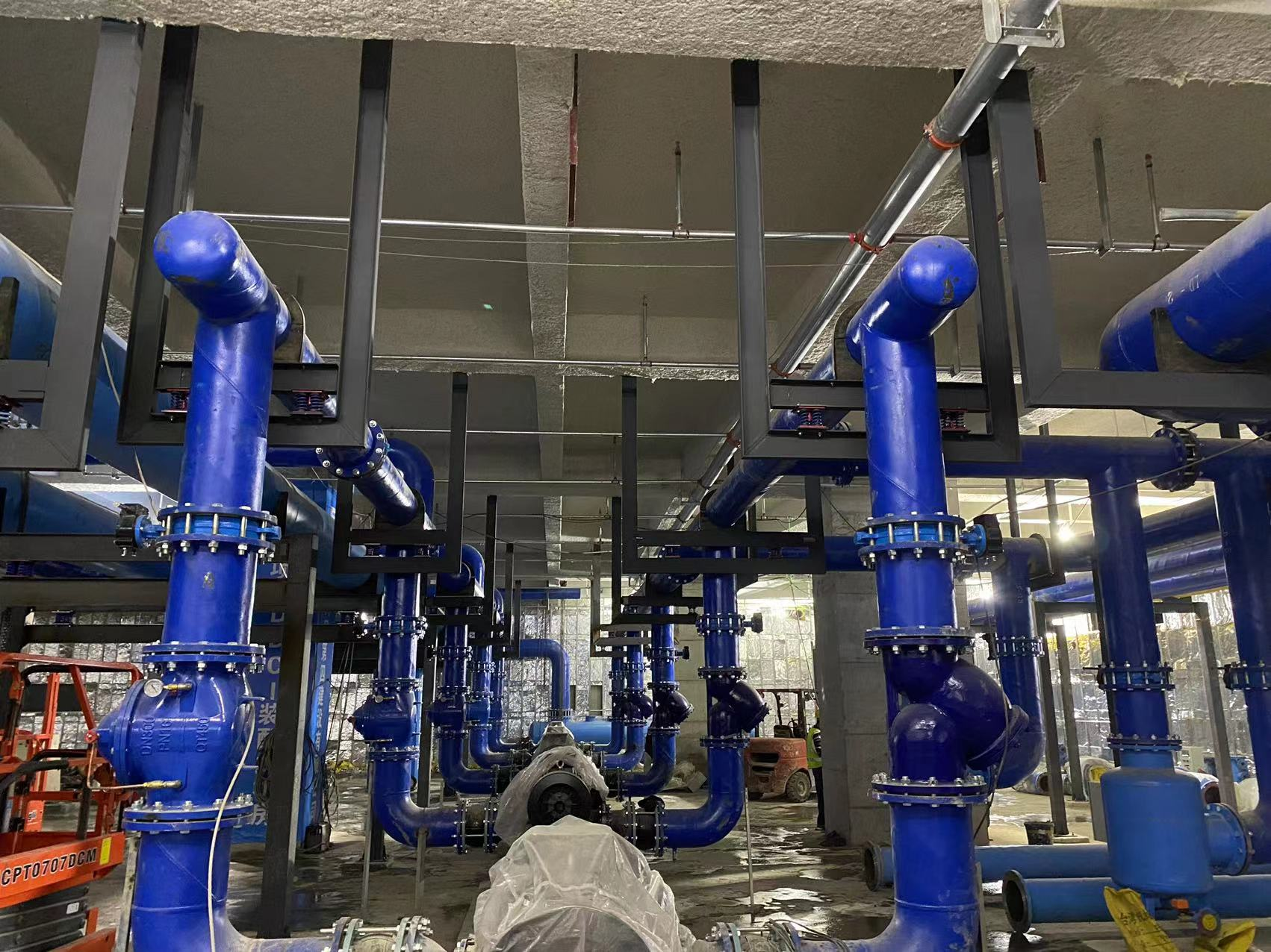 山东格瑞德集团有限公司为足球场中央空调机房提供预制安装。