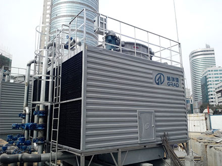冷却塔作为车站给排水系统及通风空调系统的重要设备,除特殊说明外全线通常在每个地下车站设超低噪声方形变频横流玻璃钢冷却塔2台。冷却塔与冷水机组一一对应。