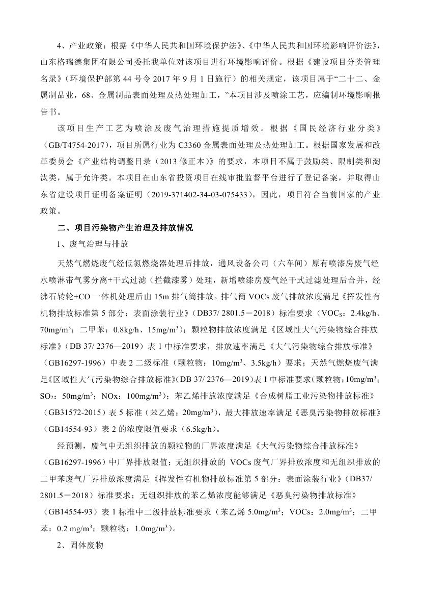 格瑞德喷漆房提质增效项目 山东格瑞德集团有限公司 格瑞德喷漆房提质增效项目 环境影响报告书