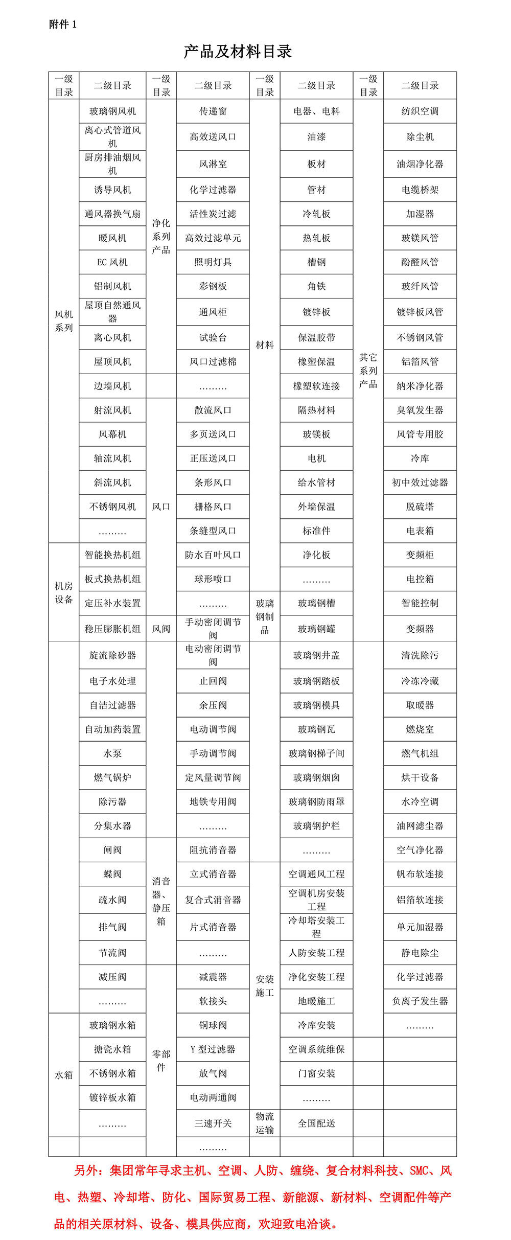 格瑞德集团旗下销售工程公司、主机公司、空调公司、人防公司、缠绕公司、复合材料科技公司、SMC公司、风电公司、热塑公司、冷却塔公司、防化公司、国际贸易工程公司、新能源公司、新材料公司、空调配件公司十五个分公司所需原材料及相关配套产品。