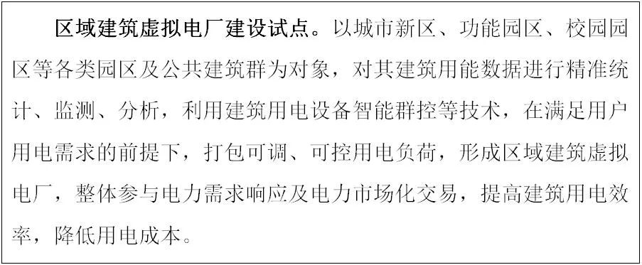 充分发挥电力在建筑终端消费清洁性、可获得性、便利性等优势,建立以电力消费为核心的建筑能源消费体系。夏热冬冷地区积极采用热泵等电采暖方式解决新增采暖需求。开展新建公共建筑全电气化设计试点示范。在城市大型商场、办公楼、酒店、机场航站楼等建筑中推广应用热泵、电蓄冷空调、蓄热电锅炉。引导生活热水、炊事用能向电气化发展,促进高效电气化技术与设备研发应用。鼓励建设以“光储直柔”为特征的新型建筑电力系统,发展柔性用电建筑。
