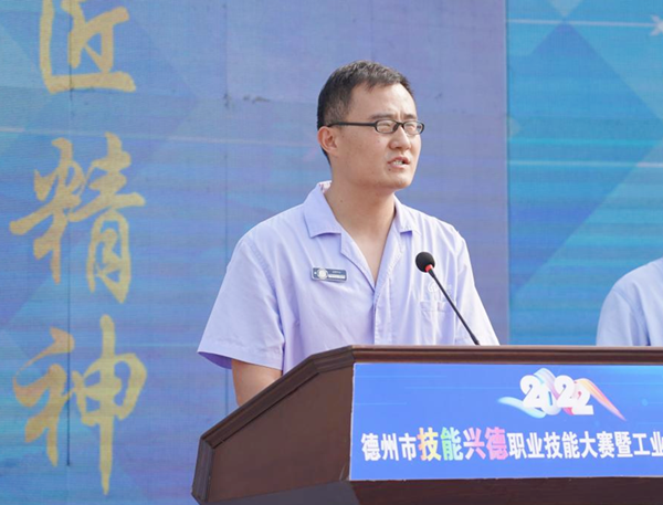 山东格瑞德集团焊接班张勇作为参赛选手代表作表态发言。