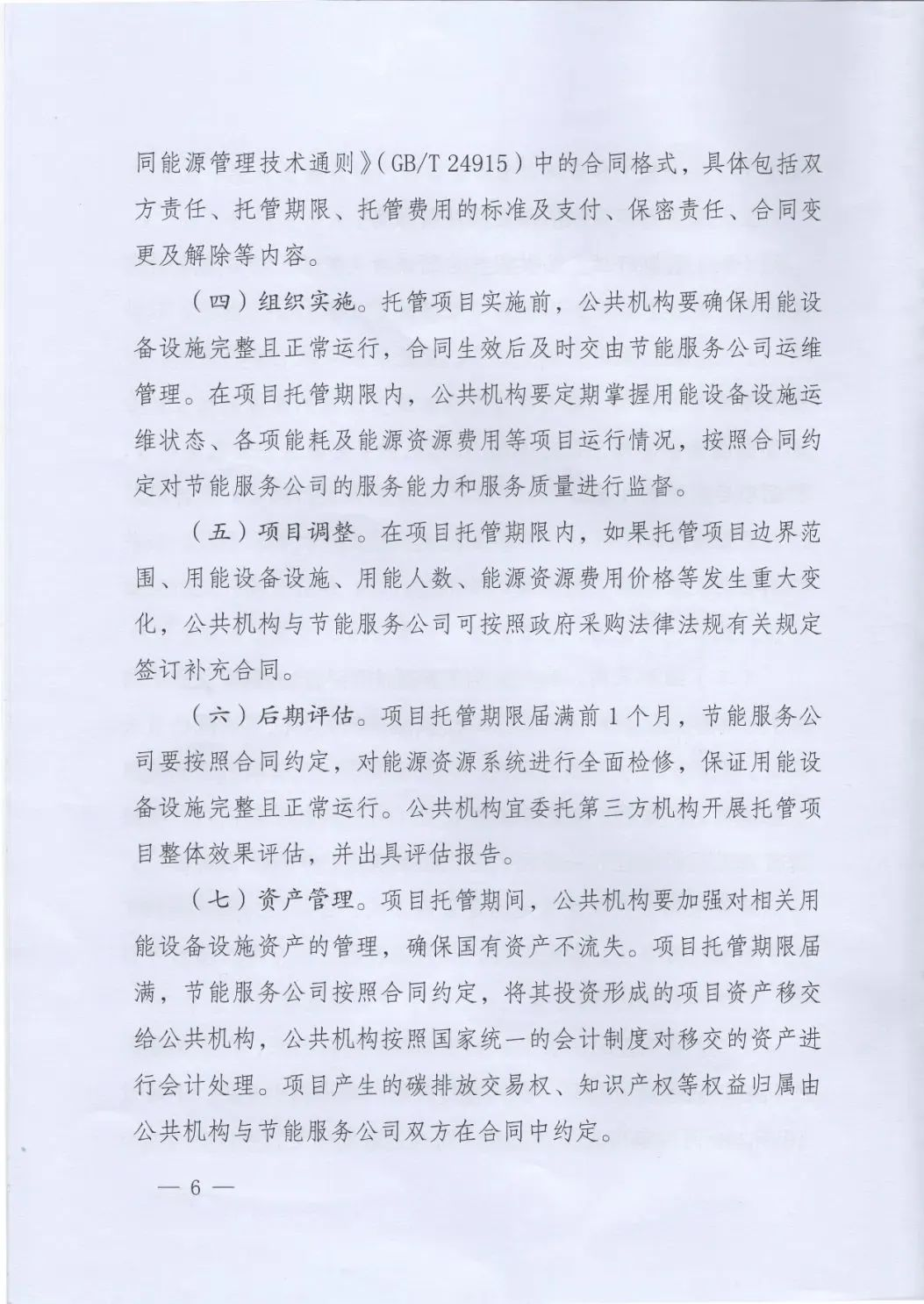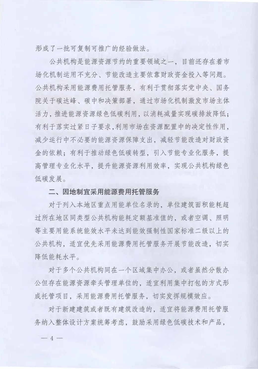 为深入贯彻习近平生态文明思想和习近平总书记关于机关事务工作的重要指示精神,落实党中央、国务院关于碳达峰、碳中和决策部署,近日,国管局、国家发展改革委、财政部印发了《关于鼓励和支持公共机构采用能源费用托管服务的意见》(以下简称《意见》),规范和加强公共机构采用能源费用托管服务工作。