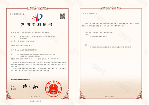 “一种危险废物处置烟气净化新工艺路线及系统”是集团环保板块在解决挥发性有机物排放问题的课题中研发的,也是该课题中获得的第二项发明专利,为“高品质活性炭吸附+活性炭集中再生+物联网全过程管控”的绿岛VOCs综合治理模式提供了强有力的技术保障。