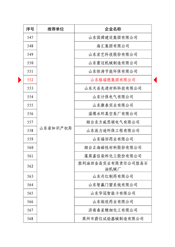 近日,国家知识产权局公布了2022年度国家知识产权示范企业和优势企业认定名单,德州共有10家企业入围,其中,格瑞德集团入选2022年度国家知识产权示范企业名单。