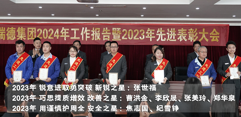 2023年是公司发展历程中极不平凡的一年,集团面临了各种挑战和机遇,正是依靠格瑞德人的团结一心和不懈努力,集团才取得了显著的业绩。过去的一年里,涌现出了一批表现卓越的团队和员工。他们以高度的责任心和敬业精神,为公司的发展做出了突出贡献。为表彰先进典型、树立榜样先锋,会上隆重表彰2023年度各单位作出突出贡献的个人及团队,动员集团全体员工以先进为榜样,立足本职、尽责担当、敢于创新、勇于奉献。