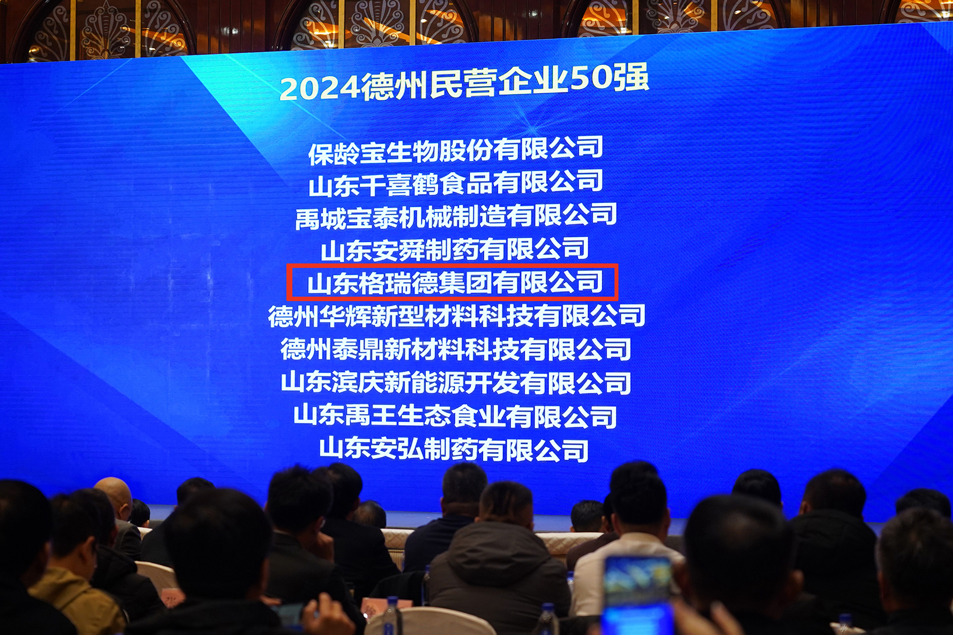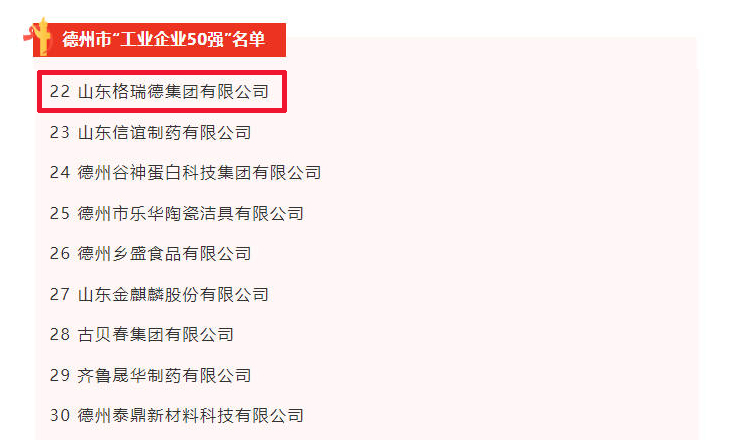 2月,德州市民营经济高质量发展暨优化营商环境大会召开。格瑞德集团凭借卓越的企业实力和持续的创新发展荣登德州市“工业企业50强”榜单。