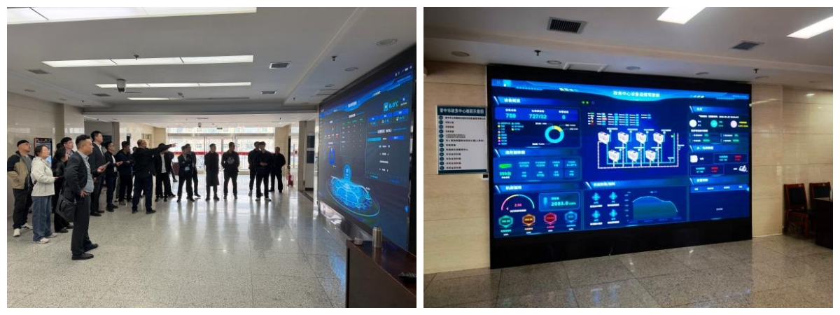 随后,考察团重点调研项目智慧能源管理平台建设运行情况。工作人员现场演示平台功能,该平台可实时采集、分析机房、光伏、照明、温控等全系统能源数据,实现能耗动态监测、设备智能联控、异常预警告警、节能效果量化分析等一体化管控。通过可视化界面,考察团清晰掌握项目整体用能状况、节能改造运行轨迹及效益产出数据,直观感受数字化、智能化技术为能源托管项目带来的管理升级与效率提升。