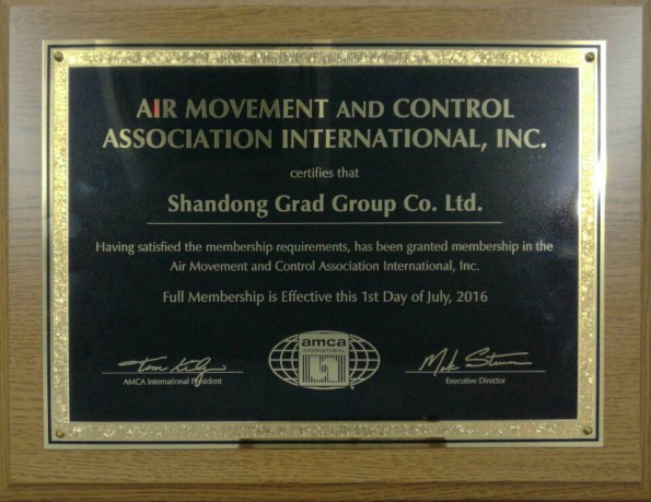 为进一步拓展格瑞德集团产品海外销售领域,格瑞德集团继完成风机盘管机组和组合式空调机组AHRI认证后,又与AMCA(美国国际空气运动及控制协会Air Movement and Control Association International, Inc.简称AMCA International)认证机构合作,申请加入AMCA,并进行申报产品性能认证事宜。