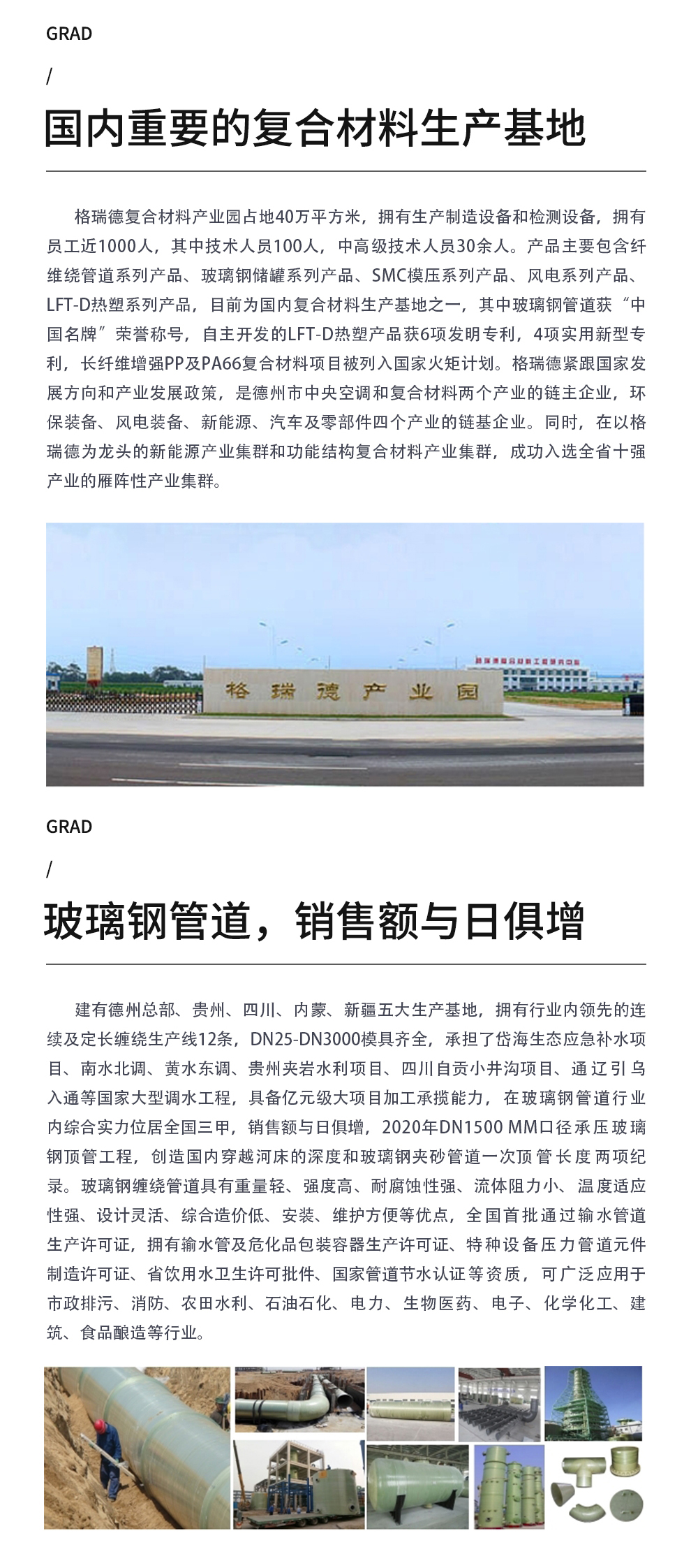 格瑞德1993年建立于山东德州,目前是一家围绕人工环境,横跨新能源、新材料、装备制造、节能环保、信息技术五大战略新型产业的企业集团。格瑞德进行全球化业务运作,产品和服务遍布全国的每一个省市和全球五大洲的100多个国家和地区,广泛应用于基建工程、商业地产、工业制造、农业开发、电子信息、车辆工程、环保处理、医药净化、海洋工程、轨道交通等领域。格瑞德从业人员过万人,在山东、贵州、四川、新疆、内蒙等地建有生产基地,在上海、北京、济南、兰州以及美国洛杉矶建有研发中心。