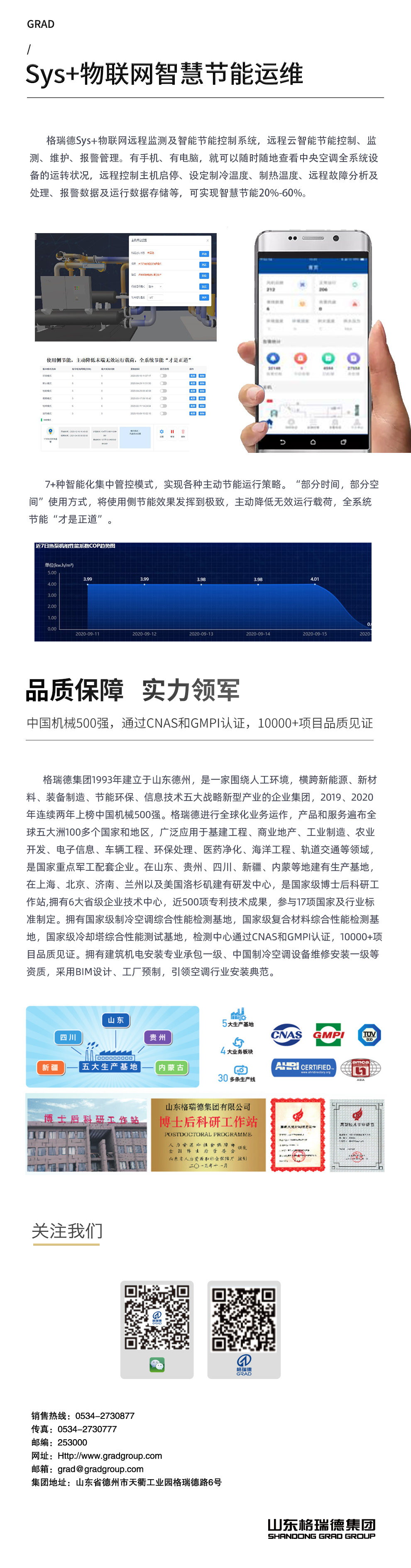 格瑞德1993年建立于山东德州,目前是一家围绕人工环境,横跨新能源、新材料、装备制造、节能环保、信息技术五大战略新型产业的企业集团。格瑞德进行全球化业务运作,产品和服务遍布全国的每一个省市和全球五大洲的100多个国家和地区,广泛应用于基建工程、商业地产、工业制造、农业开发、电子信息、车辆工程、环保处理、医药净化、海洋工程、轨道交通等领域。格瑞德从业人员过万人,在山东、贵州、四川、新疆、内蒙等地建有生产基地,在上海、北京、济南、兰州以及美国洛杉矶建有研发中心。