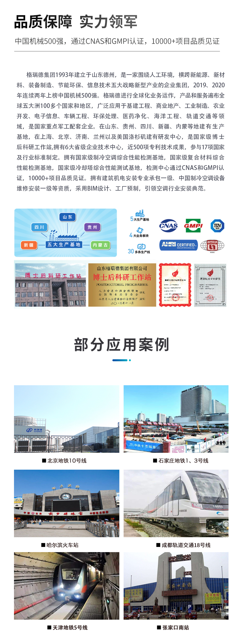 格瑞德1993年建立于山东德州,目前是一家围绕人工环境,横跨新能源、新材料、装备制造、节能环保、信息技术五大战略新型产业的企业集团。格瑞德进行全球化业务运作,产品和服务遍布全国的每一个省市和全球五大洲的100多个国家和地区,广泛应用于基建工程、商业地产、工业制造、农业开发、电子信息、车辆工程、环保处理、医药净化、海洋工程、轨道交通等领域。格瑞德从业人员过万人,在山东、贵州、四川、新疆、内蒙等地建有生产基地,在上海、北京、济南、兰州以及美国洛杉矶建有研发中心。