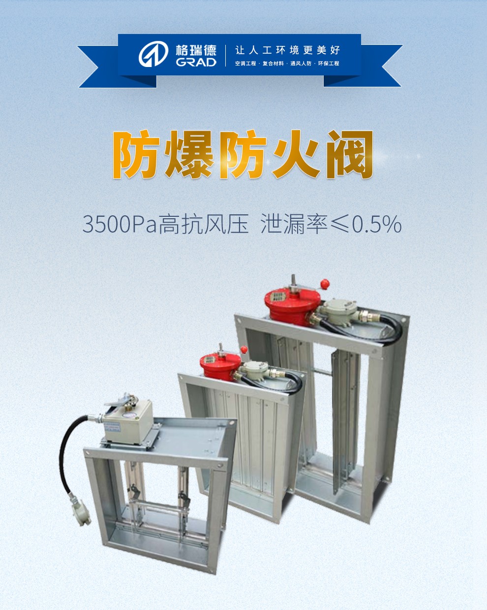 格瑞德致力于让人工环境更美好,通过打造空调工程、通风人防、复合材料、环保工程领域的全过程解决方案来满足客户需求,格瑞德构建了包括品牌规划、系统设计、技术开发、产品制造、整体施工、维护服务、检测认证、人才交流、产业集群的全生命周期产业链和产业生态。